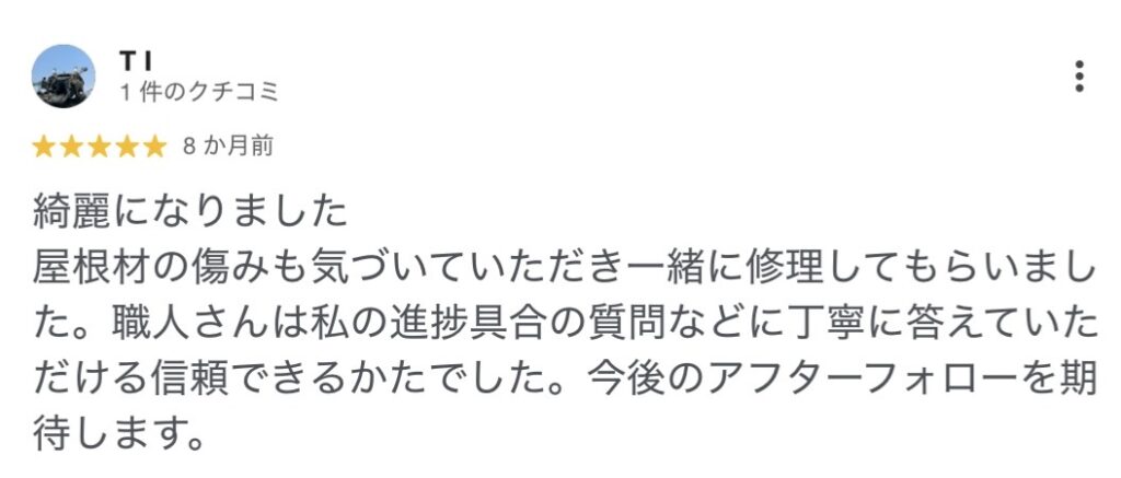 口コミでもチェックしていただき、実際のお客様からのお声も確認するとよいかと思います。