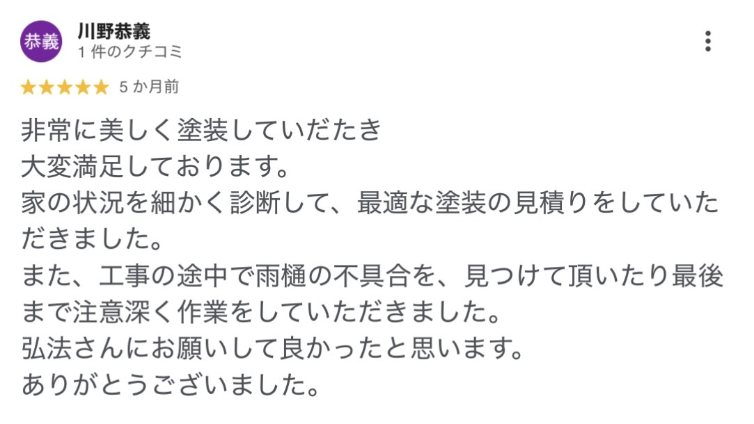 細かく診断して、最適な塗装の見積りをしていただきました。(Google口コミより)