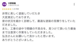 見違えるような出来映えとなり感謝です。中井町の外壁塗装後のお客様の声(Google口コミより)